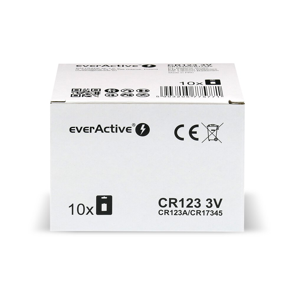 everActive CR123 batteries meet strict safety requirements, comply with applicable European Union standards, and have the CE mark, which guarantees high quality and safety of use.