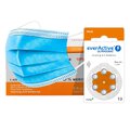- Ilość: 120 sztuk baterii słuchowych, 6 sztuk jednorazowych maseczek ochronnych 3-warstwowych / chirurgicznych