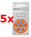 5 listków (30szt.) baterii POWER ONE do aparatów słuchowych firmy VARTA - typ 13.