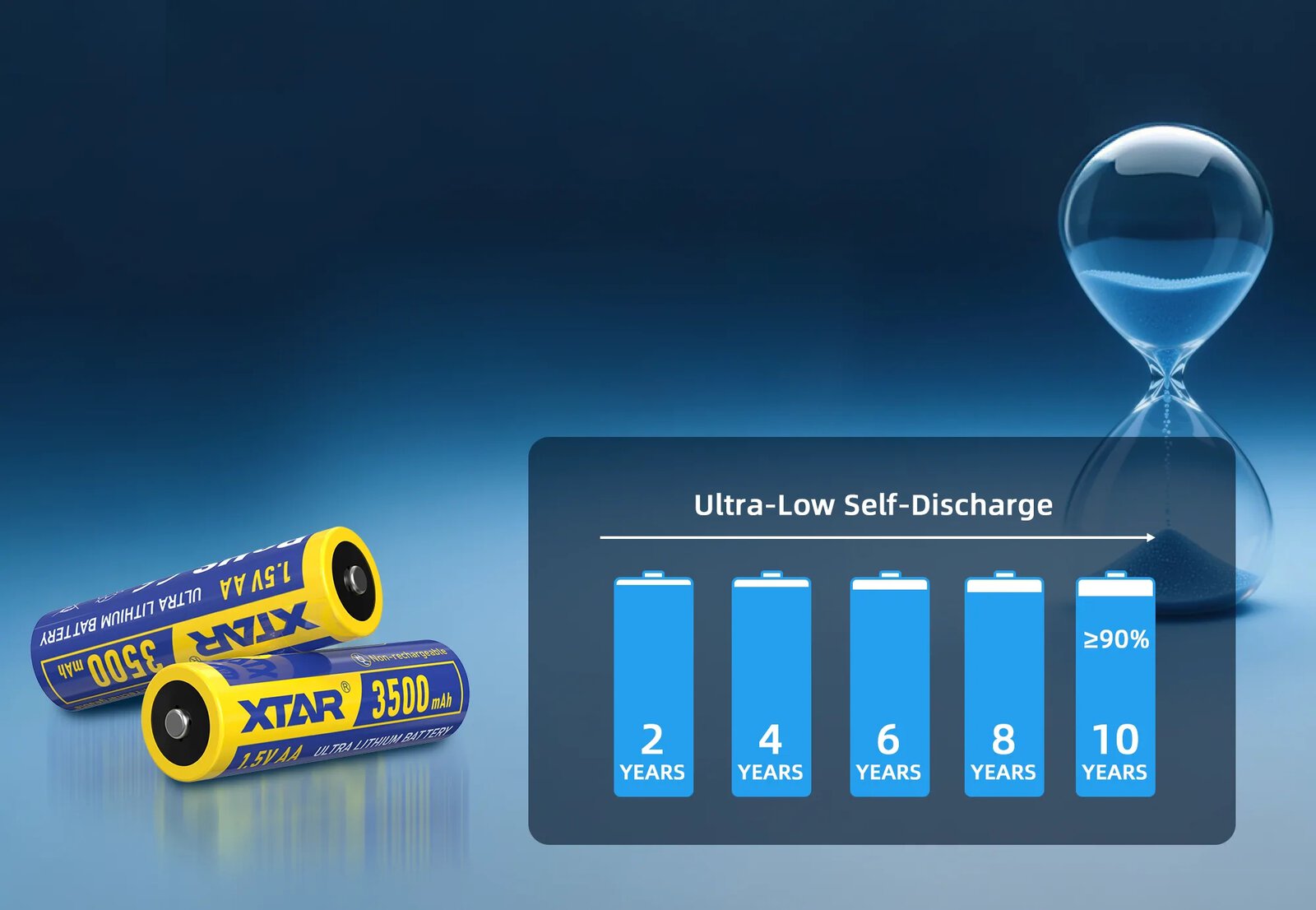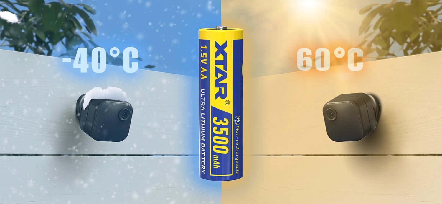 Xtar Ultra Lithium 3500D AA lithium batteries operate stably in a temperature range of -40°C to 60°C, maintaining90% capacity even at -30°C, while alkaline batteries oftenfail in cold temperatures and discharge quickly in high temperatures.