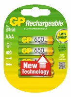 4 akumulatorki Ni-MH R03/AAA 650 wyprodukowane przez jednego ze światowych liderów w dziedzinie produkcji akumulatorków i baterii - firmę GP Batteries.
