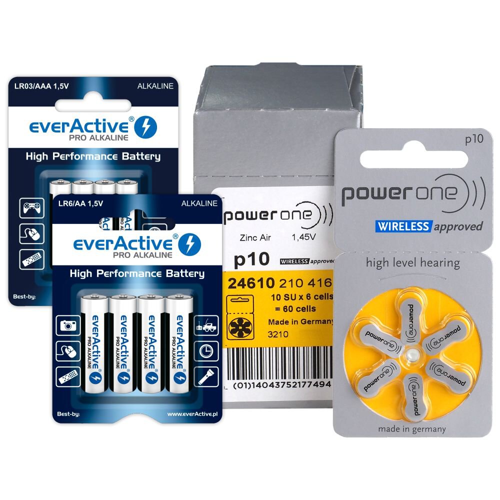 - Ilość: 60 sztuk baterii Power One Varta, 4 sztuki LR6 / AA everActive Pro Alkaline, 4 sztuki LR03 / AAA everActive Pro Alkaline
