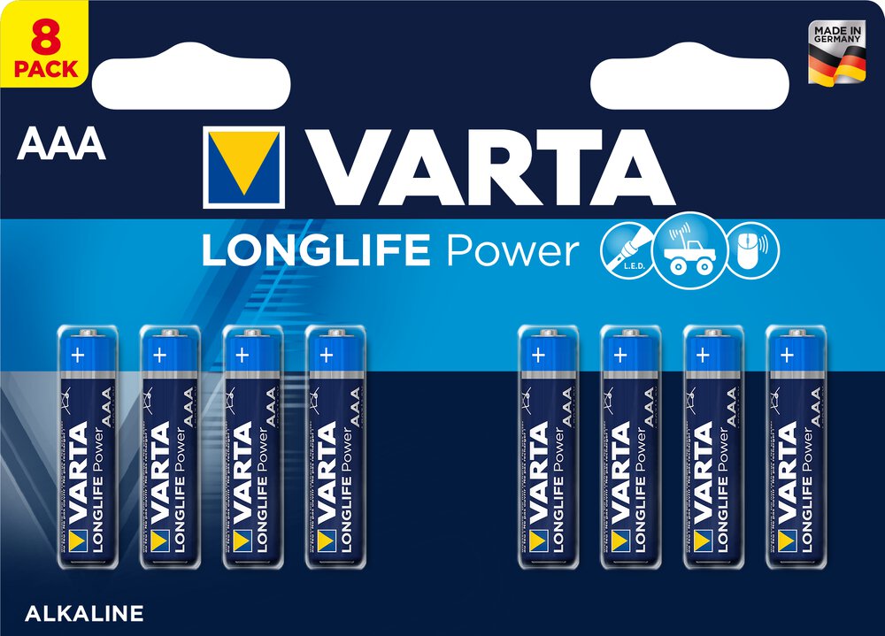 Baterie LONGLIFE POWER są kontynuacją jednej z najwyższych serii baterii alkalicznych VARTA - HIGH ENERGY i charakteryzują się zwiększoną pojemnością i wydajnością w stosunku do standardowych baterii alkalicznych.