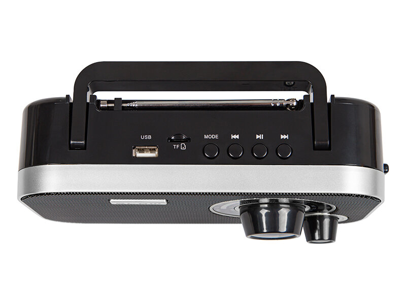 The telescopic antenna improves FM and AM signal quality, ensuring stable and clear reception of radio stations.