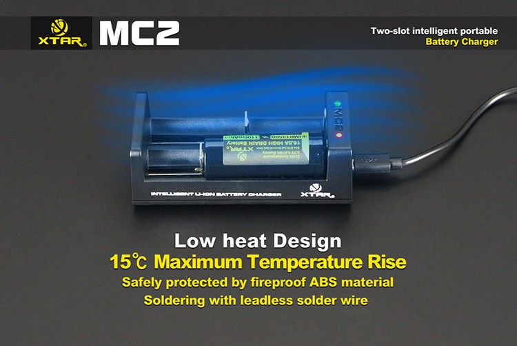 Chargers from other manufacturers can significantly increase the temperature of the charged cells during charging. Too much heating of the cells can cause them to wear out faster. With the MC2 charger, Xtar went a step further than the competition by solving this problem in a simple way: it used power from an external power supply. Thanks to this, the temperature of the battery charged in the MC2 will increase by a maximum of 15 degrees.