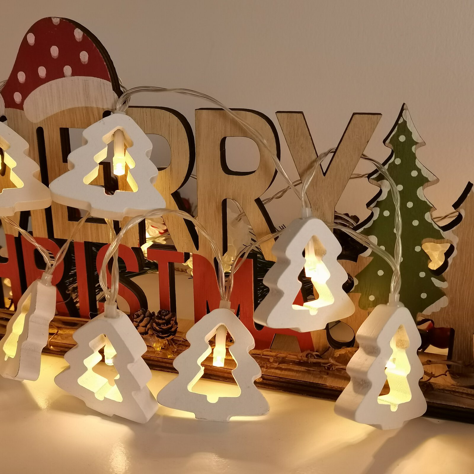 In terms of size, the decoration is 120 cm long and is equipped with 10 LEDs. The bulbs in the shape of Christmas trees are placed every 10 cm. The chain is connected to the battery box by a 30 cm long cable, which runs on 2 AA batteries. With the use of high-quality, long-lasting batteries, the decoration can shine for up to 3 days of continuous use.