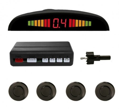 kompletny zestaw do montażu: 4 sensory w kolorze czarnym, centralka sterująca, wyświetlacz LED na deskę rozdzielczą, otwornica + pełne okablowanie