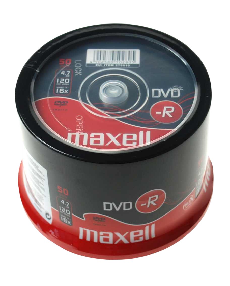 A set of 50 MAXELL DVD-R discs packed in a practical Cake Box type plastic case is a proven solution for data archiving, recording movies, music, and backups – both at home and in the office.