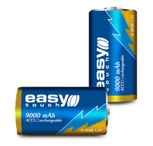 Modern Ni-MH (nickel-metal hydride) R14 C, R20 D batteries are characterized by significantly increased efficiency compared to smaller R6 AA counterparts or technologically older Ni-CD (nickel-cadmium) cells. Ideal for demanding flashlights, headlights and other professional devices. The capacity of Easy Touch batteries is similar to alkaline batteries, but they can be recharged multiple times (up to 1000x). Batteries tolerate discharge with high current much better.