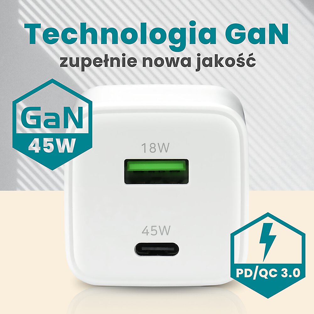 GaN technology is the next generation of high-performance chargers. The use of gallium nitride instead of traditional silicon allows: