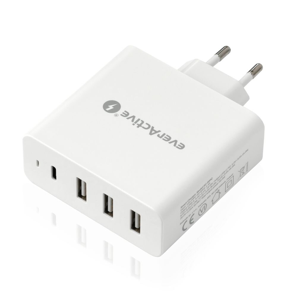 everActive SC-500Q is a solid network charger with 3 USB and USB-C Power Delivery ports. Small and compact dimensions and ergonomic seated sockets enhance the user experience of the charger.