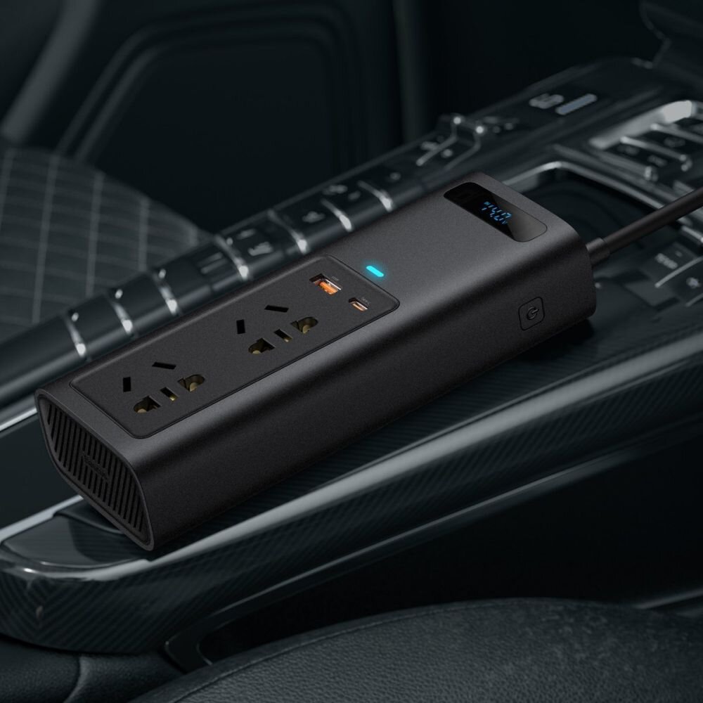 The Baseus inverter will allow you to renew the power of multiple devices with 4 output ports. With the dual AC port, you can charge, for example, a laptop or a desk lamp. And the USB and USB-C ports allow you to charge your phone, tablet, powerbank or handheld fans.