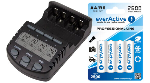 2) 4x akumulatorki nowej generacji everActive R6/AA Ni-MH 2600mAh.