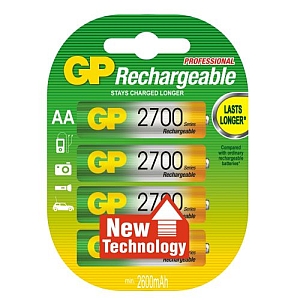 4 akumulatorki Ni-MH R6/AA 2700 wyprodukowane przez jednego ze światowych liderów w dziedzinie produkcji akumulatorków i baterii - firmę GP Batteries.