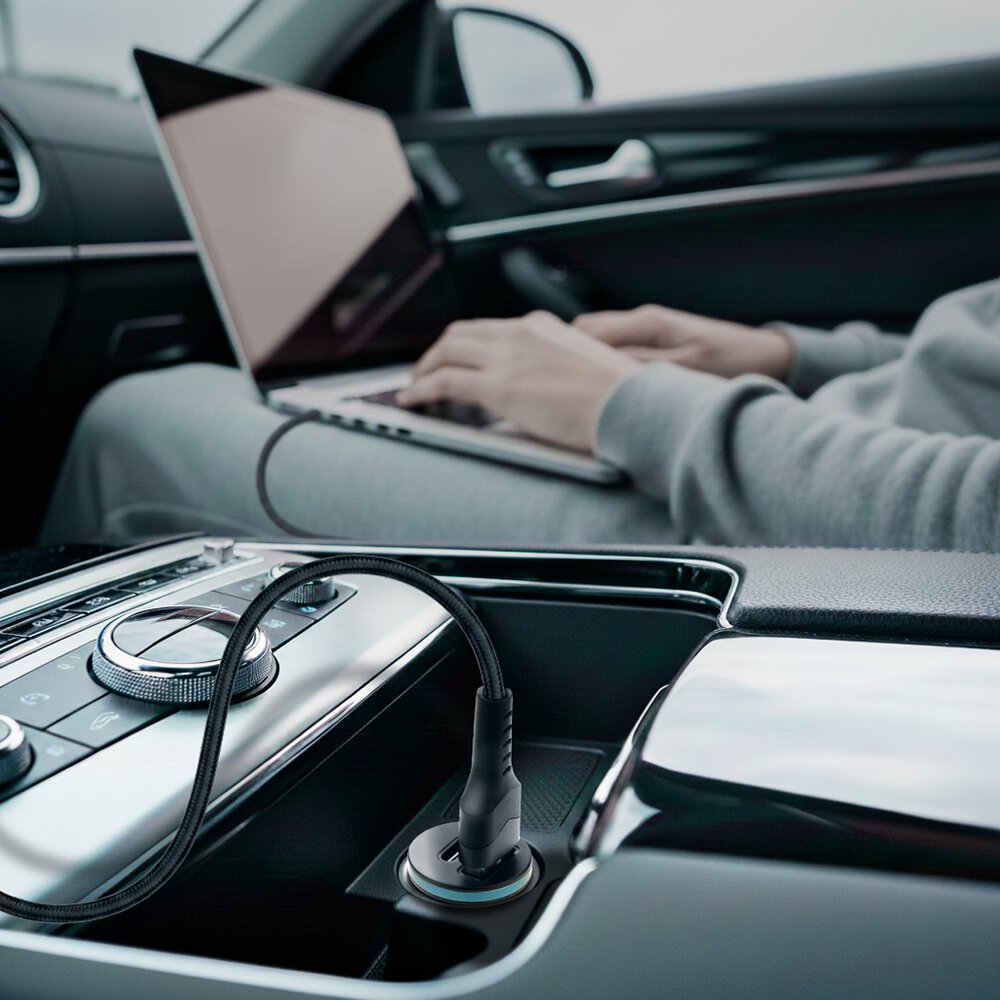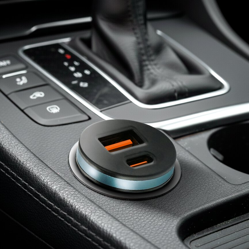 Compact dimensions (24.2 x 46.7 mm) and low weight (12 g) make the charger fit perfectly in the cigarette lighter socket. The stylish, modern look and high-quality materials of the casing ensure that the device not only works reliably but also looks great in the car.