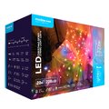 The chain is 20 meters long, with a green wire on which 200 colored LEDs (red, blue, green, yellow and purple) are arranged at intervals of 10 cm. An additional 3-metre cable with an EU standard plug increases the total length of the set to 23 metres. With an IP44 rating for dust and splash resistance, the chain is suitable for both indoor and outdoor use.