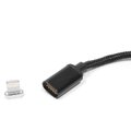 Pleciony kabel USB marki eXtreme z magnetycznym złączem Lighting. Kabel pozwala na ładowanie urządzeń oraz transmisję danych. Specjalny oplot kabla sprawia, że jest on bardzo wytrzymały na uszkodzenia. Magnetyczna końcówka po odpięciu od kabla może pozostać w gnieździe telefonu (takie rozwiązanie zmniejsza zużywanie się gniazda).