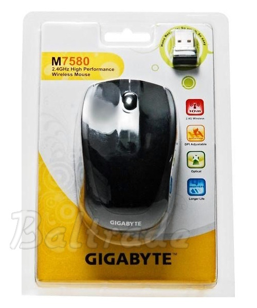 EKSKLUZYWNA MYSZ BEZPRZEWODOWA GIGABYTE GM-M7580, NANO 2,4GHz USB 500 - 1000dpi.