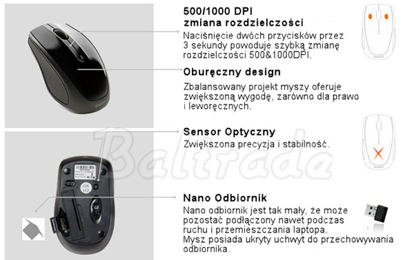 W myszy zaimplementowano najbardziej zaawansowane mechanizmy oszczędzania energii - nawet do 6 miesięcy pracy na komplecie baterii!