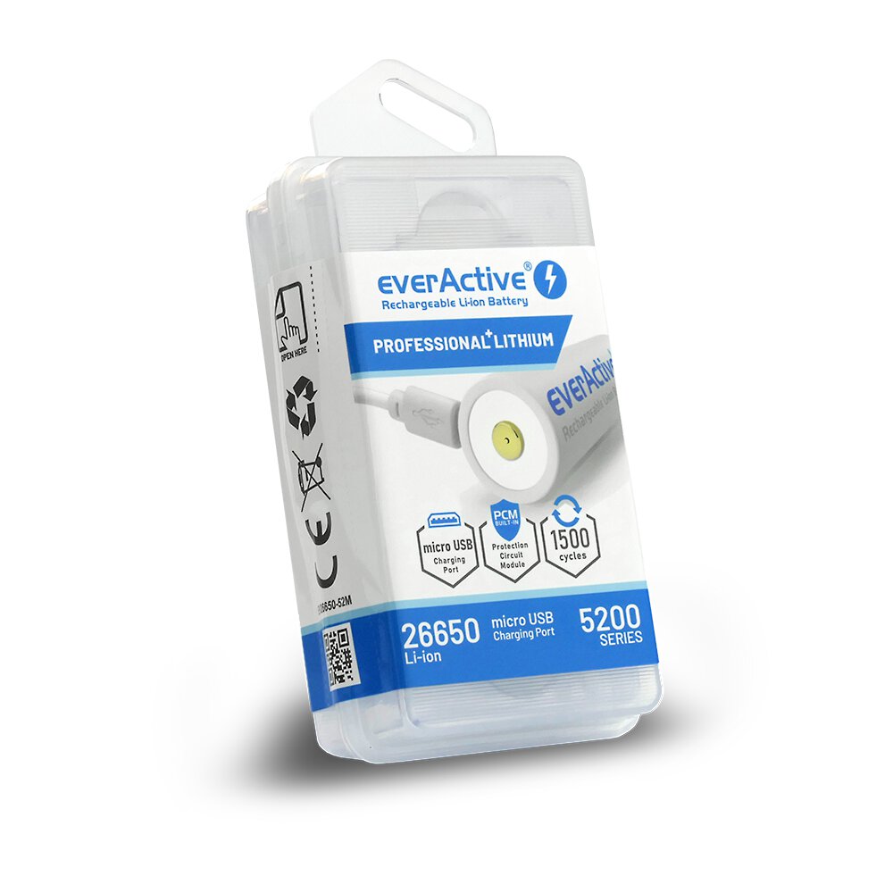 Innovative 26650 5200 mAh everActive battery made in Li-ion technology.