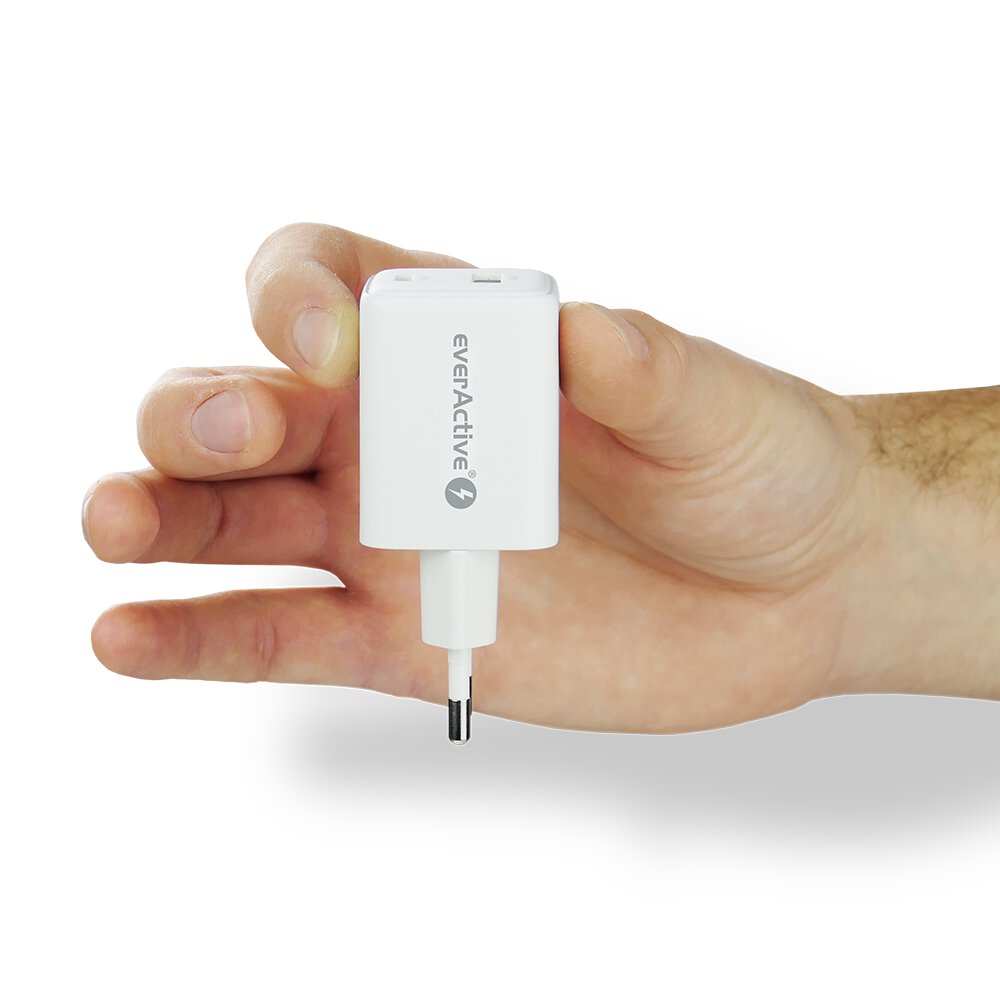 Thanks to the use of the latest GaN technology, the charger from everActive is 30% smaller than a standard charger and takes up less space as a result. Wide voltage and voltage frequency range - 100-240V ~ 50-60Hz, allows you to use the charger anywhere in the world. The compact size makes it easy to store, making it perfect for travel.