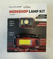 A versatile Falcon Eye lighting kit consisting of an impact-resistant headlamp and a multi-purpose workshop lamp.