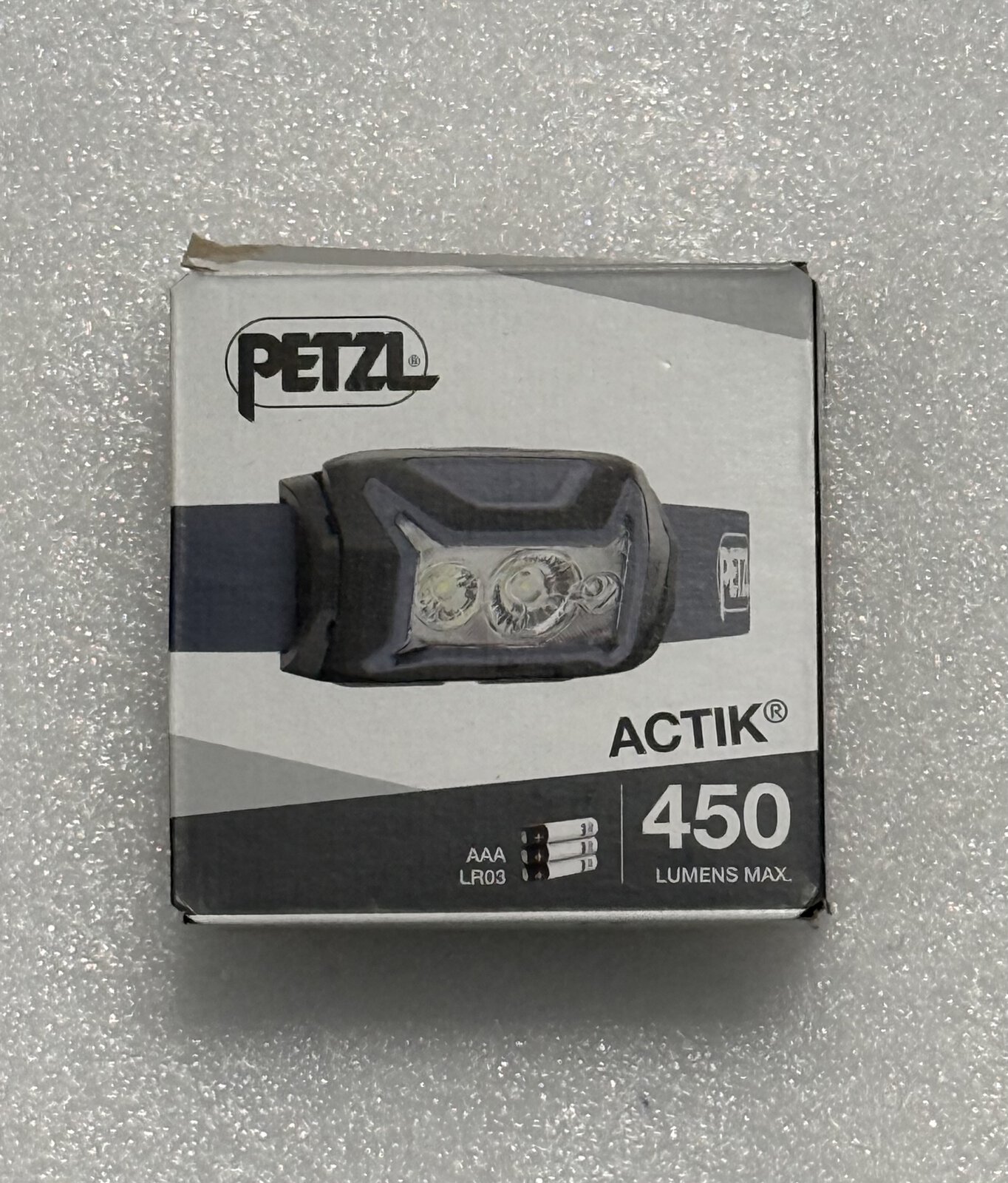 - power supply: 3 AAA/R03 batteries (included) or Petzl Core battery (not included)