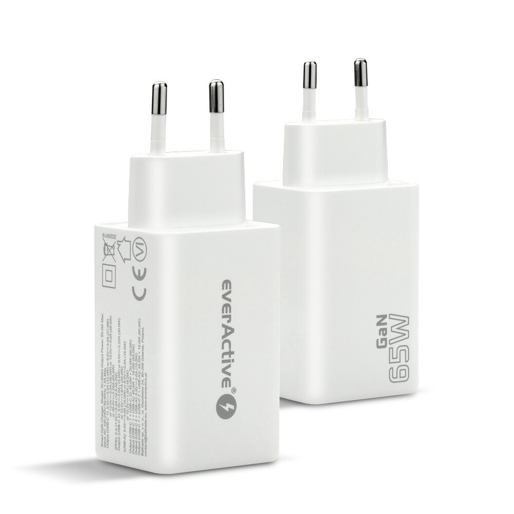 Thanks to the use of the latest GaN technology, the charger from everActive is 30% smaller than a standard charger and takes up less space as a result. Wide voltage and voltage frequency range - 100-240V ~ 50-60Hz, allows you to use the charger anywhere in the world. The compact size makes it easy to store, making it perfect for travel.