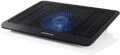 Podstawka MODECOM SILENT FAN MC-CF13 jest bardzo solidna. Została wykonana z wysokiej klasy tworzywa. Jej górna część jest pokryta specjalną, siatkowaną powierzchnią, która dzięki licznym otworom, zapewnia doskonałe odprowadzenie ciepła emitowanego przez rozgrzany laptop. Bezpośrednio pod nią znajduje się bardzo cichy i wydajny, podświetlany na niebiesko diodami LED, 14-centymentrowy wentylator chłodzący.