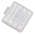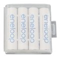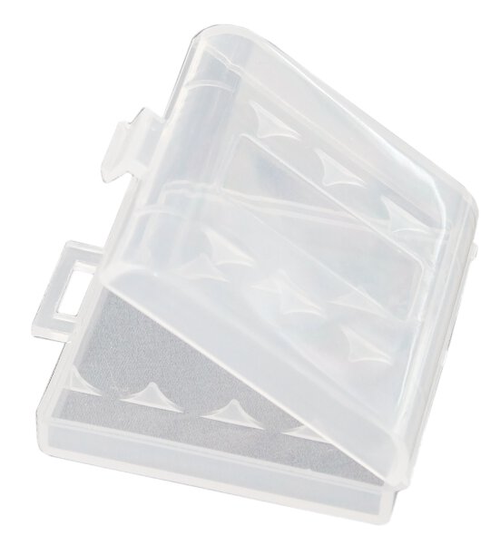 Przezroczysty, mocny, twardy i solidny plastikowy pojemnik na 4 akumulatorki lub baterie R03/AAA