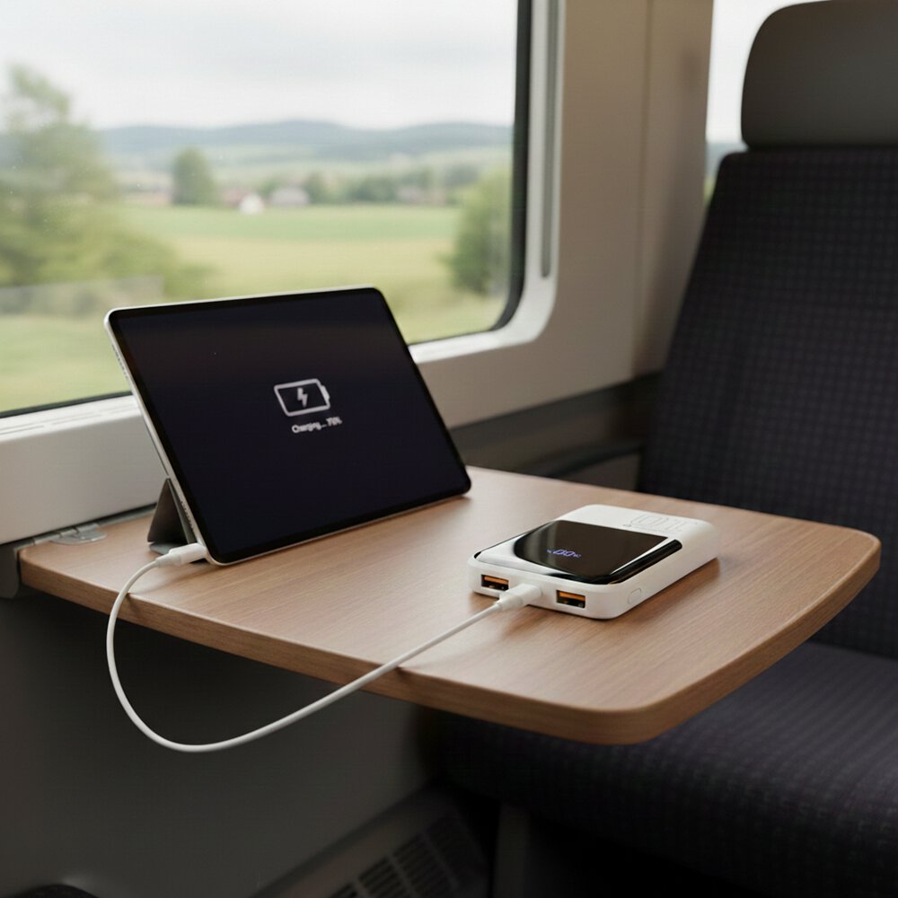 The advanced pass-through function allows simultaneous charging of the power bank and the devices connected to it. No need to disconnect cables, no downtime – the perfect solution for office work, overnight charging, or mobile stations where continuous power supply matters.