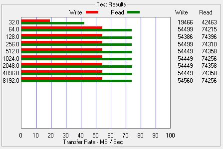 - Osiągnięte parametry w testach: zapis 54MB/s, odczyt 74MB/s