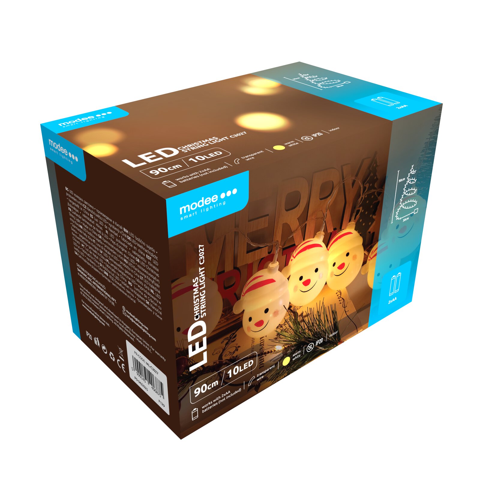 In terms of size, the decoration is 120 cm long and is equipped with 10 LEDs. The bulbs in the shape of snowballs are placed every 10 cm. The chain is connected to the battery box by a 30 cm long cable, which runs on 2 AA batteries. With the use of high-quality, long-lasting batteries, the decoration can shine for up to 3 days of continuous use.