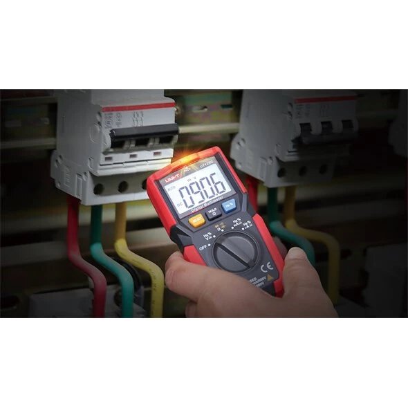 The UT125C is equipped with an automatic measurement range change function, which makes work easier and faster. The electric field detection function allows for contactless location of live wires, which increases safety of use. The meter also offers a last-note freeze function, LCD backlight and a low battery indicator, which increases the comfort of work. Automatic shut-off saves energy, and a maximum reading of 4000 for precise measurements