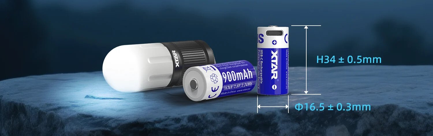 Standard size 16340 withan impressive capacity of 900mAh– ideal for smallflashlights, EDC equipment and tactical tools. Enjoy long-lasting light and less frequent battery changes during your trip.