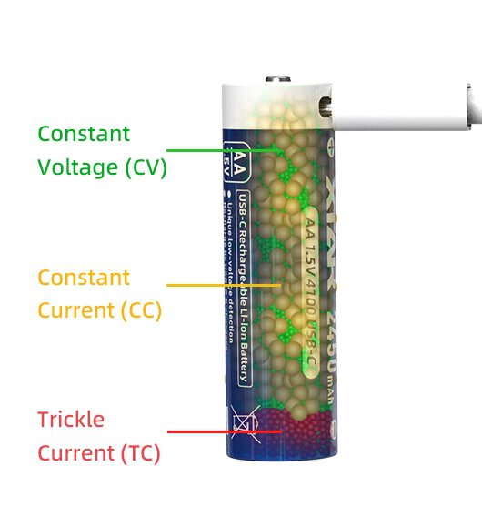 All rechargeable batteries are charged using the TC/CC/CV method, which ensures a longer battery life.