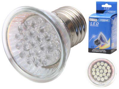 Żarówka nowej generacji 21 LED E27 o mocy 1 W. Wszystkie żarówki wykonane z wysokiej jakości materiałów bowiem spełniają wymogi ROHS, a także posiadają certyfikat CE gwarantując bezpieczne użytkowanie. Diody LED osiągają dużo większą sprawność w bezpośredniej zamianie energii elektrycznej na światło. Podstawowa zaleta to bardzo małe zużycie prądu przy bardzo długim okresie żywotności.