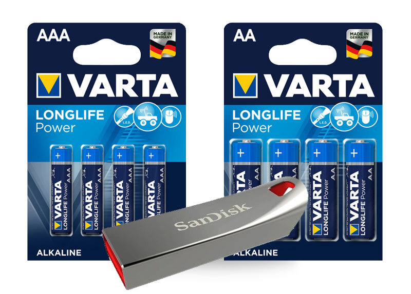 Promocyjny zestaw baterii alkalicznych Varta Longlife Power + Pendrive SanDisk USB 2.0 - FORCE - 32GB