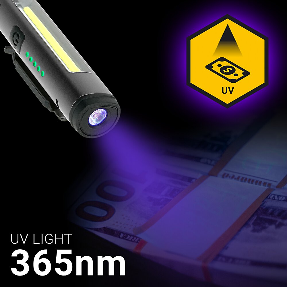 Dzięki zaawansowanej diodzie UV, w prosty sposób zweryfikujemy oryginalność banknotów, zlokalizujemy plamy z krwi czy sprawdzimy szczelności klimatyzacji.