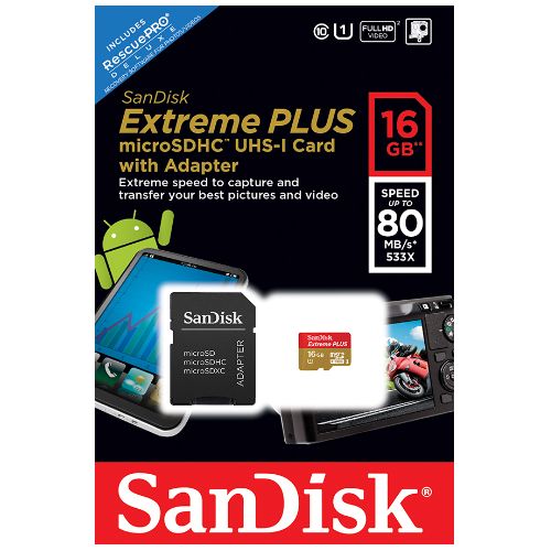 SanDisk microSDHC 16GB Extreme PLUS class UHS-I, class 10 prędkość zapisu: do 30 MB/s (200x) prędkość odczytu: do 80 MB/s (533x) |