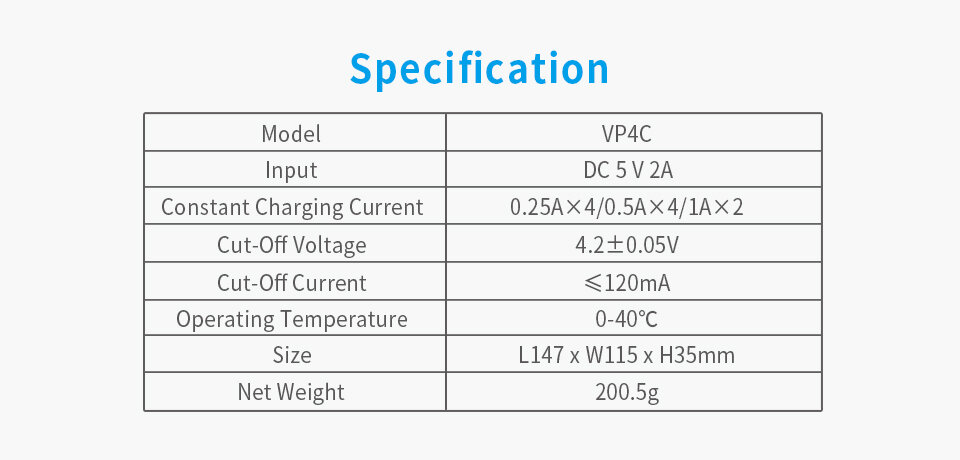 Ładowarki od innych producentów mogą znacząco podnosić temperaturę ładowanych ogniw podczas ładowania. Zbytnie nagrzewanie się ogniw może powodować ich szybsze zużycie. Projektując ładowarkę VP4, firma Xtar poszła o krok dalej od konkurencji, rozwiązując ten problem w prosty sposób : zastosowano zasilanie z zewnętrznego zasilacza. Dzięki temu temperatura ładowanego w VP4 akumulatorka wzrośnie najwyżej o 15 stopni.