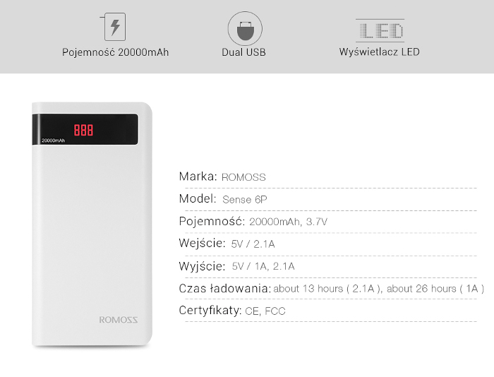 | pojemność | 20000mAh |