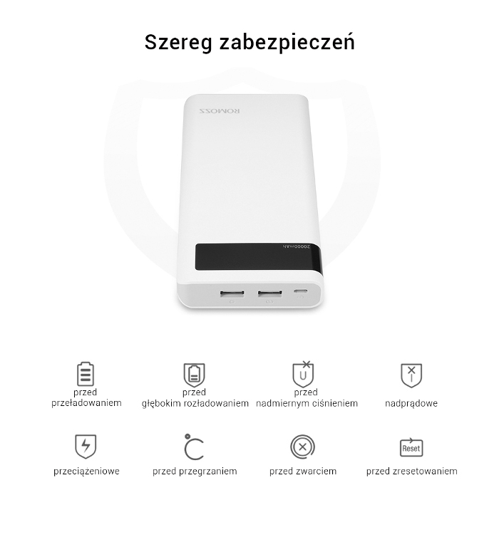 Za zabezpieczenie power banku Sense 6P tak jak i innych urządzeń marki Romoss odpowiadają wbudowane elementy wykorzystujące najnowsze rozwiązania w dziennie ochrony elektroniki.