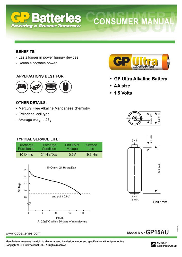 Dane dot. bezpieczeństwa produktu 4 x bateria alkaliczna GP Ultra Alkaline LR6 / AA
