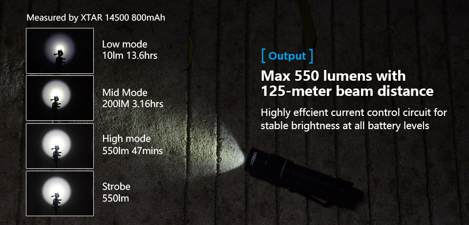 W odróżnieniu od większości konkurencyjnych latarek Xtar w swojej konstrukcji użył wysokiej jakości reflektora o strukturze OP (orange peel, skórka pomarańczy), który w porównaniu ze standardowym (gładkim) reflektorem generuje znacznie gładszą i przyjemniejszą dla oka wiązkę.