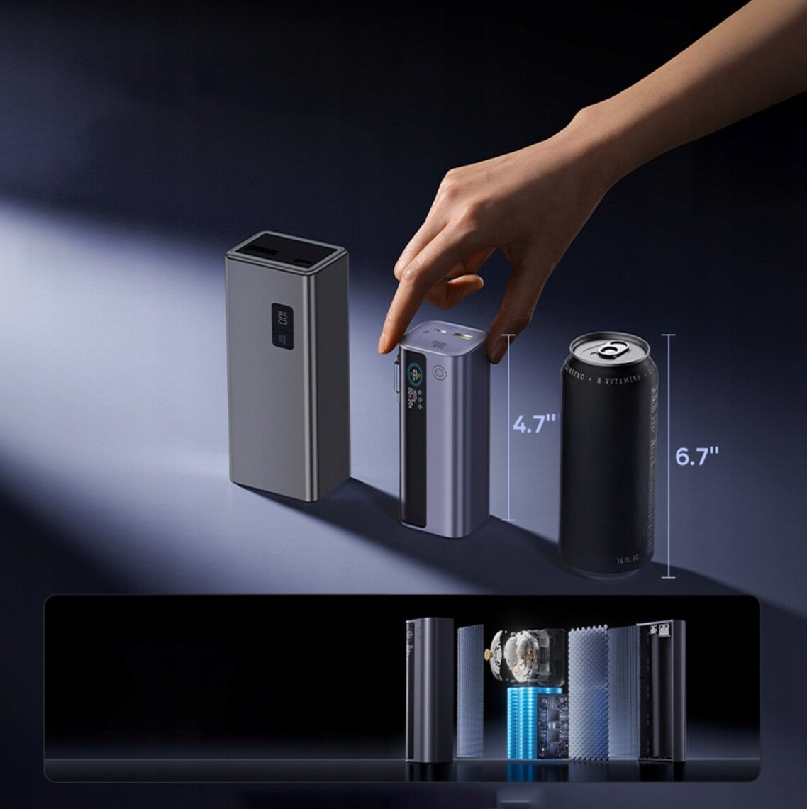 Powerbank был разработан так, чтобы сочетать большую мощность с мобильной формой. Легкая и удобная конструкция позволяет без проблем помещаться в сумке, рюкзаке или кармане.