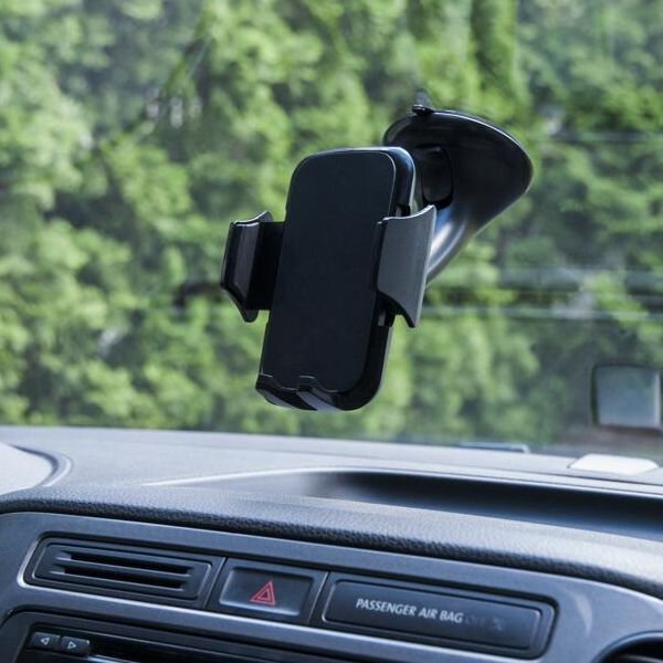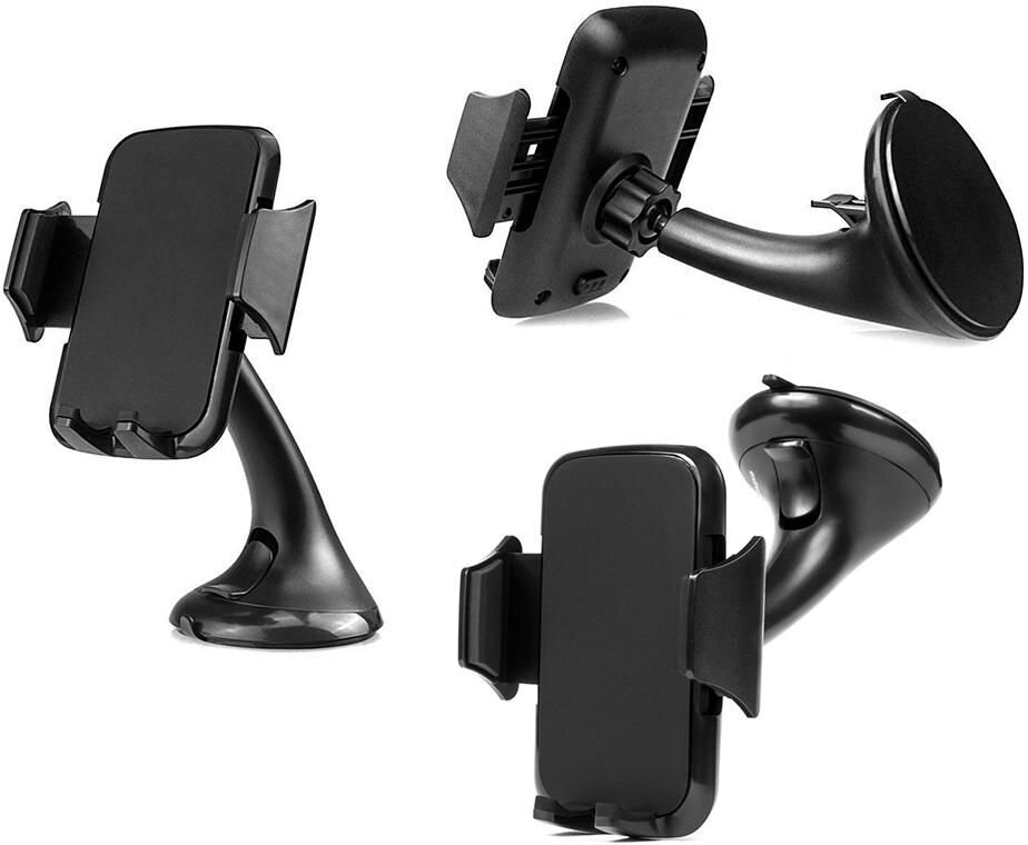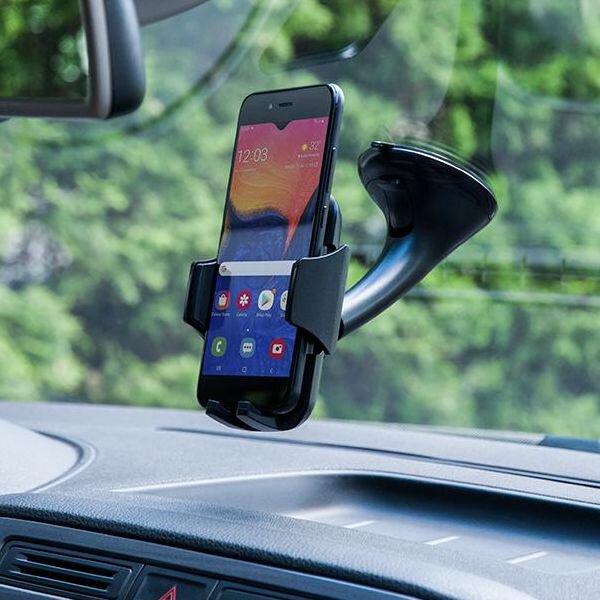 Kulowe połączenie głowicy z mocowaniem do szyby umożliwia ustawienie telefonu zarówno w poziomie jak i w pionie.
