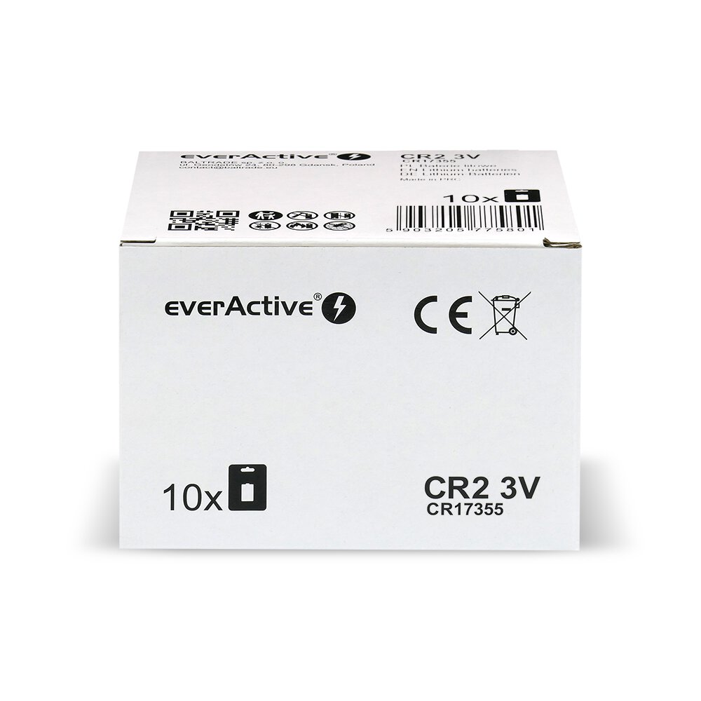 everActive CR2 batteries are from current production and are characterized by low self-discharge and a long shelf life of up to 10 years from the date of manufacture. This makes them perfect for both devices used regularly and those that are started occasionally or in an emergency.