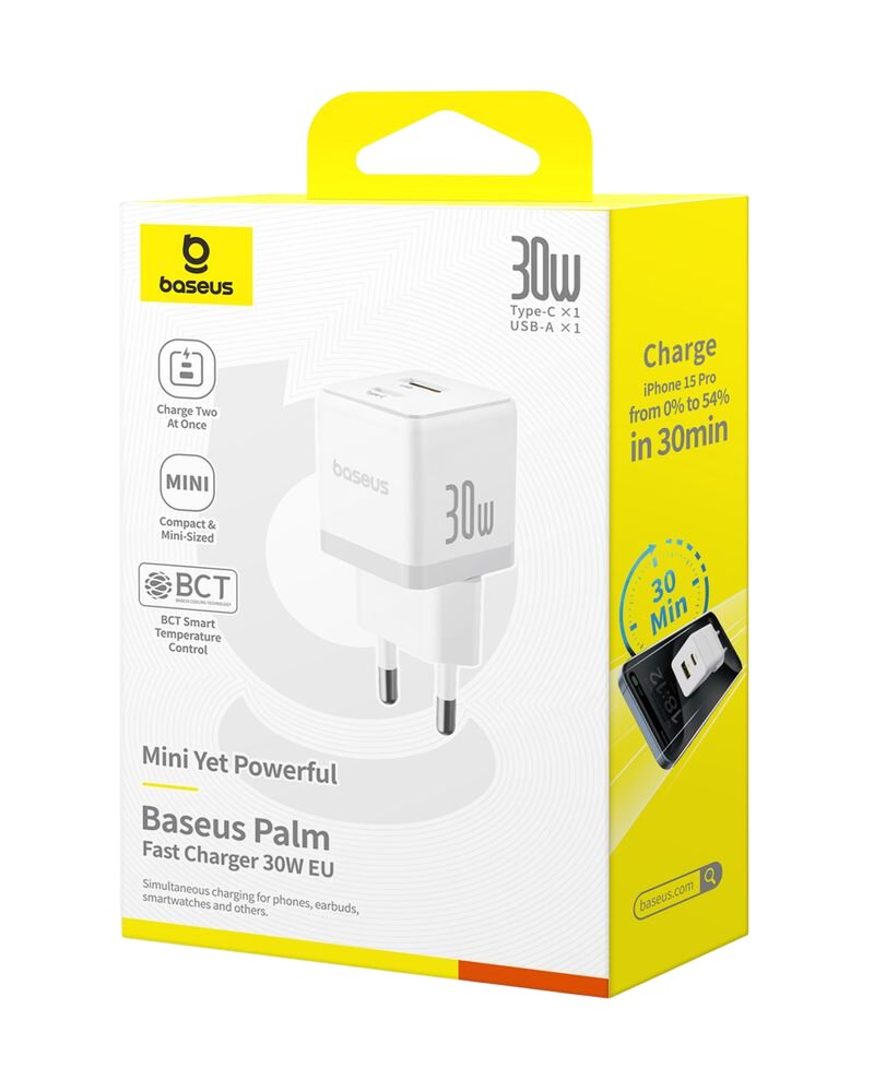 The Baseus Palm charger supports Power Delivery 3.0 technology, providing fast and stable charging with a power of up to 30 W. Ideal for modern smartphones, headphones, and USB-C accessories – the shorter you wait, the longer you use.