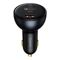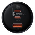 Are you looking for an efficient car charger that will instantly replenish energy in several devices at the same time? Baseus Qualcomm is a solution created for people who travel frequently and need a reliable power source. Equipped with two USB-C ports and one USB port, it provides maximum charging speed with Quick Charge 5 support. Additionally, the charger has advanced protection systems that protect your equipment from short circuits, overloads, and overheating.